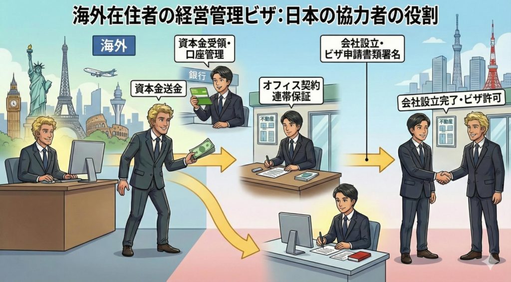 海外からの経営管理ビザ申請において、「日本の協力者」は単なる手伝いではなく、「設立時取締役」という法的責任を伴う重要なポジションです。